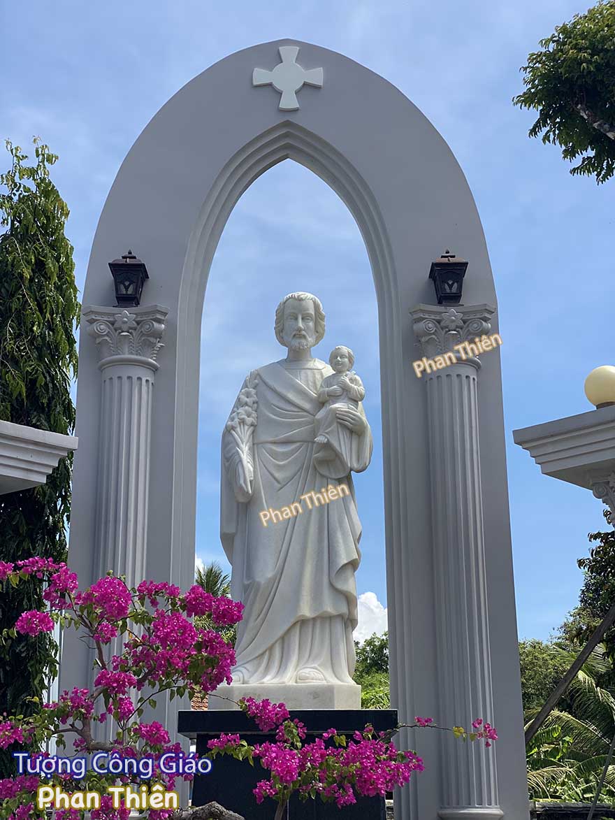 Tượng Thánh Giu sê bế Chúa bằng đá Cẩm thạch tự nhiên và nguyên khối