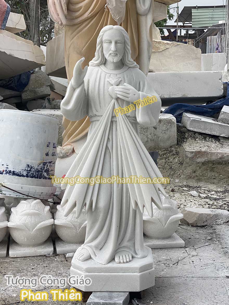 Tượng Chúa Lòng Thương Xót bằng đá Cẩm thạch mịn trắng trong xanh, cao 1,5m, tự nhiên và nguyên khối